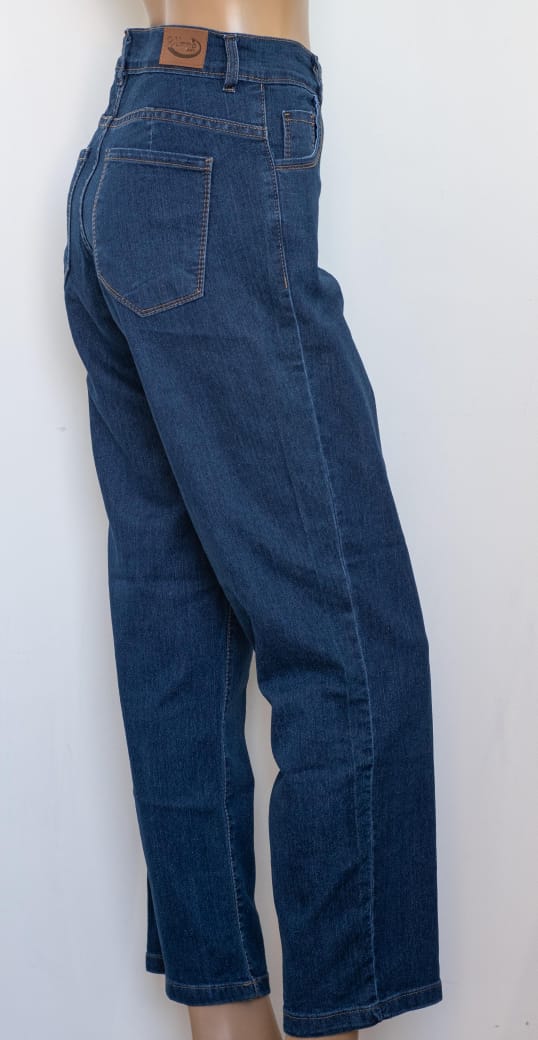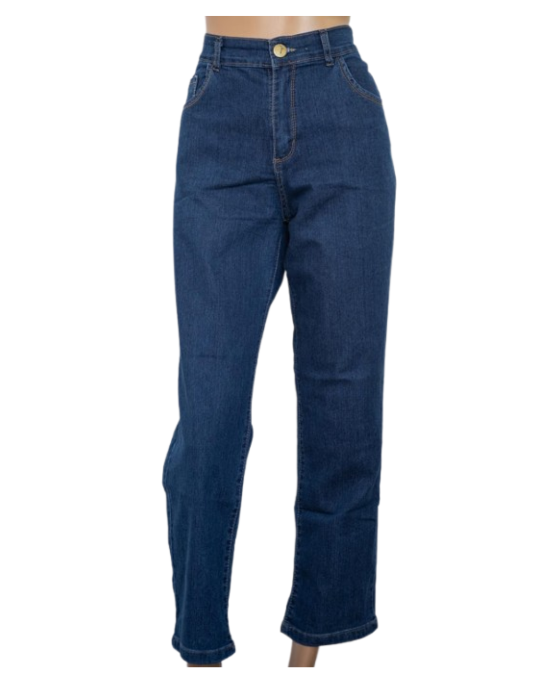 Este jean de corte recto y tiro alto es la definición de versatilidad. Su diseño limpio y su tono azul oscuro lo convierten en la prenda ideal tanto para un look de oficina relajado como para una salida casual de fin de semana.
