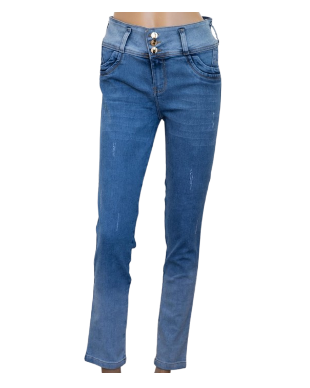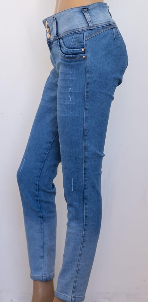 Este Jean Skinny de tiro alto está diseñado para ofrecerte comodidad y un estilo impecable. Su característica principal es la pretina ancha con tres botones frontales, que actúa con un “efecto faja” para definir la cintura y brindar un excelente soporte abdominal.