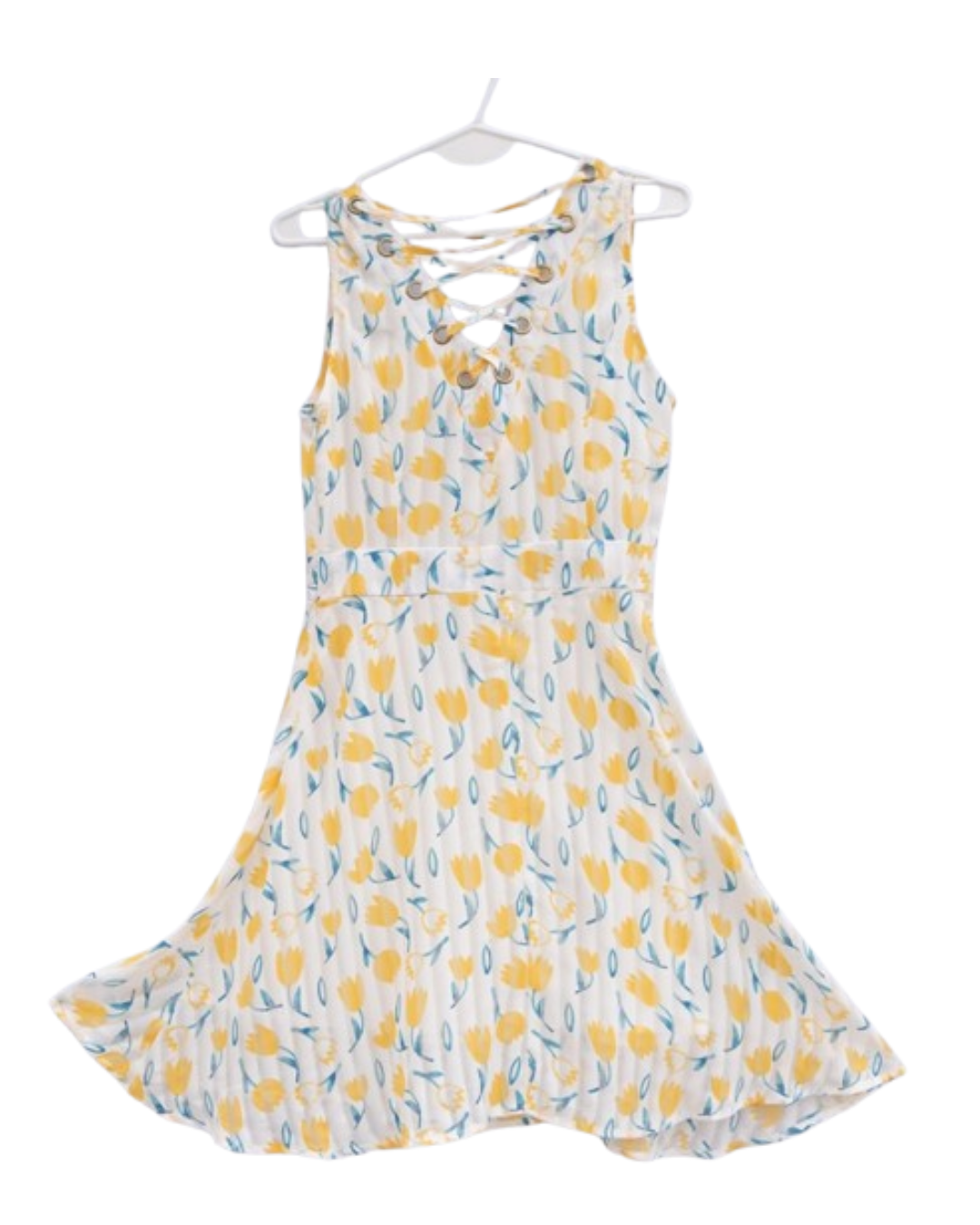 Los tulipanes que florecen en tu vestido. Gasa delicada con estampado floral romántico.